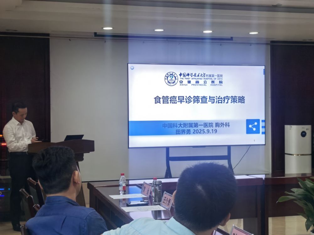 揭牌仪式后,夏永伟院长就《当涂县肿瘤行动方案》进行了专题汇报,勾勒出未来工作的清晰蓝图。在紧随其后的学术交流环节,会议内容精彩纷呈。安徽省肿瘤医院的田介勇、叶磊、黄金三位教授分别围绕《食管癌早诊筛查与治疗策略》、《“小探头,大作用”-超声在肿瘤防治中的应用》及《浅谈消化内镜在食管恶性肿瘤诊治中的应用》作了前沿而实用的专题报告。马鞍山市人民医院崔方博主任则对区域肿瘤质控工作进行了总结并提出了明确要求。此外,当涂县人民医院徐圆医师分享的《肺癌MDT全流程病例》,生动展示了多学科协作(MDT)诊疗模式在临床实践中的卓越价值。