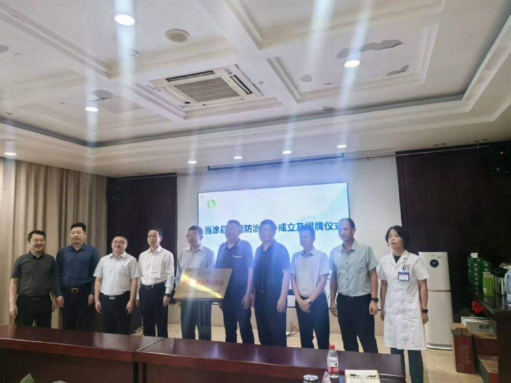 在全体与会人员的共同见证下,虞德才书记与当涂县相关领导尹琦书记一同为“当涂县肿瘤防治中心”揭牌,现场掌声雷动,开启了当涂县肿瘤防治事业的新篇章。