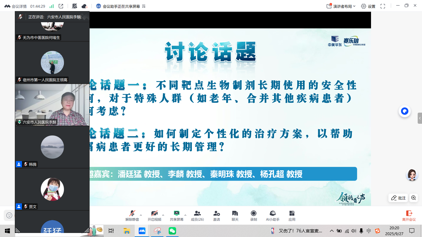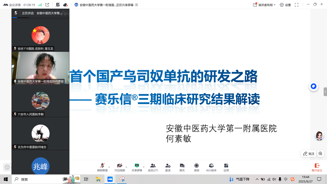 会议在浓厚的学术氛围中拉开序幕。安徽医科大学第二附属医院潘玉龙主任就《特别关爱、安全安心-银屑病特殊人群使用生物制剂的考量》进行了精彩分享,为特殊人群的临床用药提供了宝贵指导。随后,何素敏教授详细阐述了《首个国产乌司奴单抗的研发之路》,展现了国内创新药物研发的进展,为提升临床研究质量、惠及更多患者拓宽了思路。