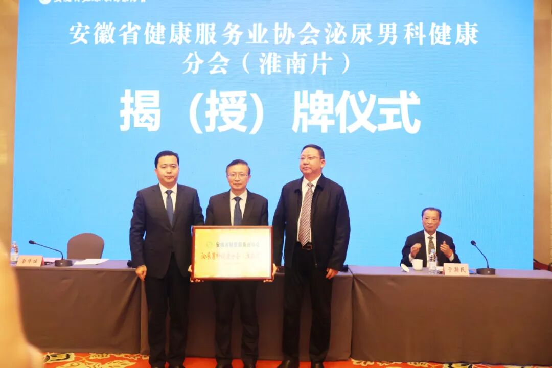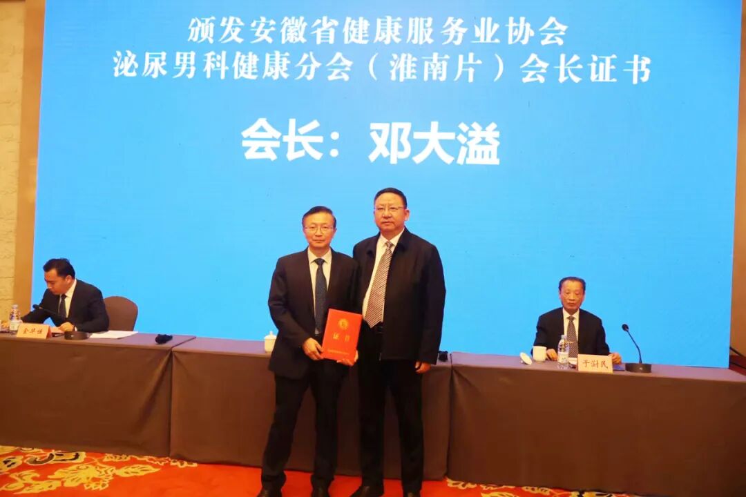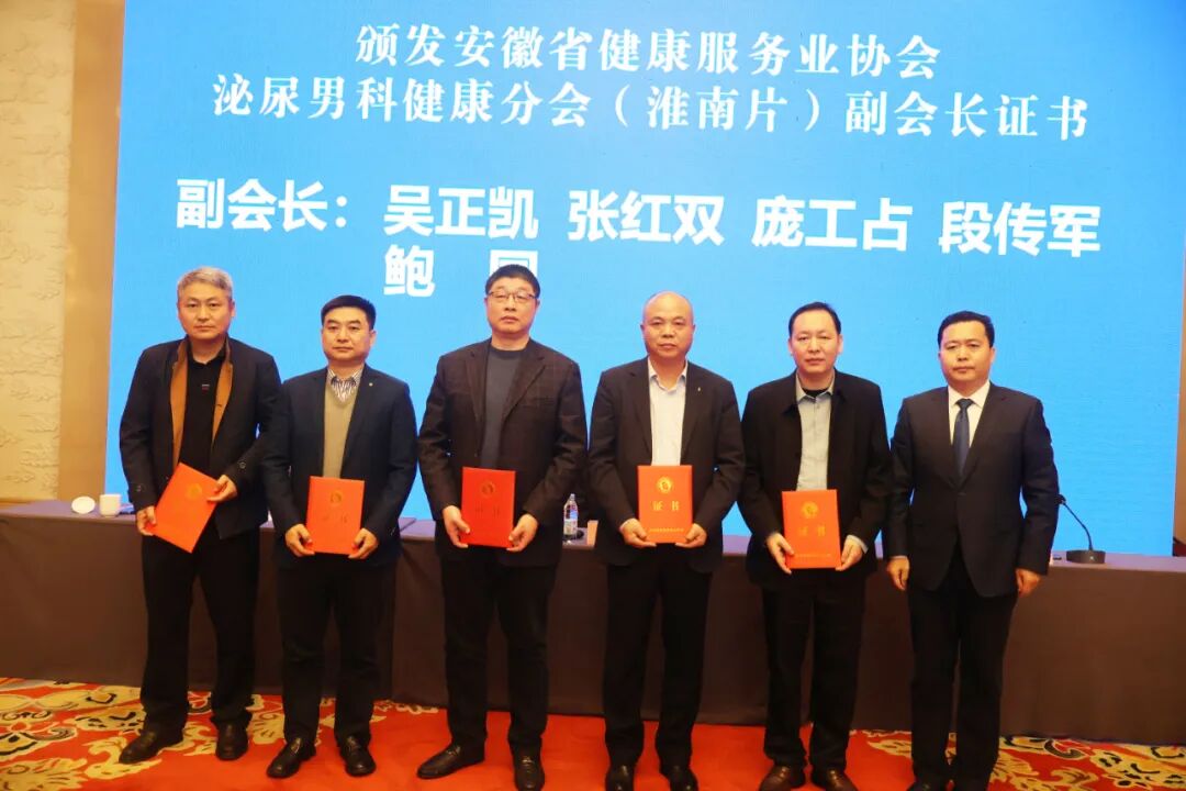 △杜昌智会长为新当选的泌尿男科健康分会(淮南片)会长颁发证书 △余华伍秘书长为新当选的泌尿男科健康分会(淮南片)副会长颁发证书