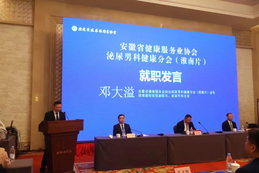 随后,新当选的泌尿男科健康分会(淮南片)邓大溢会长发表就职演讲,他感谢了协会领导给予的信任和支持,他将以“服务、连接、开拓”为核心使命,与全体委员共同努力,推动分会实现三大目标:一是搭建高效协同、百花齐放的学术平台,通过“请进来、走出去”双向联动,促进学术交流与技术提升;二是打造传承有序、人才辈出的青年梯队,设立青年学组,助力青年医师成长;三是树立服务社会、科普惠民的健康品牌,推动泌尿男科健康知识普及,切实提升群众健康素养。邓大溢强调,“独行快,众行远”,分会的成立不是终点,而是携手服务淮南地区泌尿男科健康事业的新起, , 点。 △泌尿男科健康分会(淮南片)会长邓大溢作就职发言
