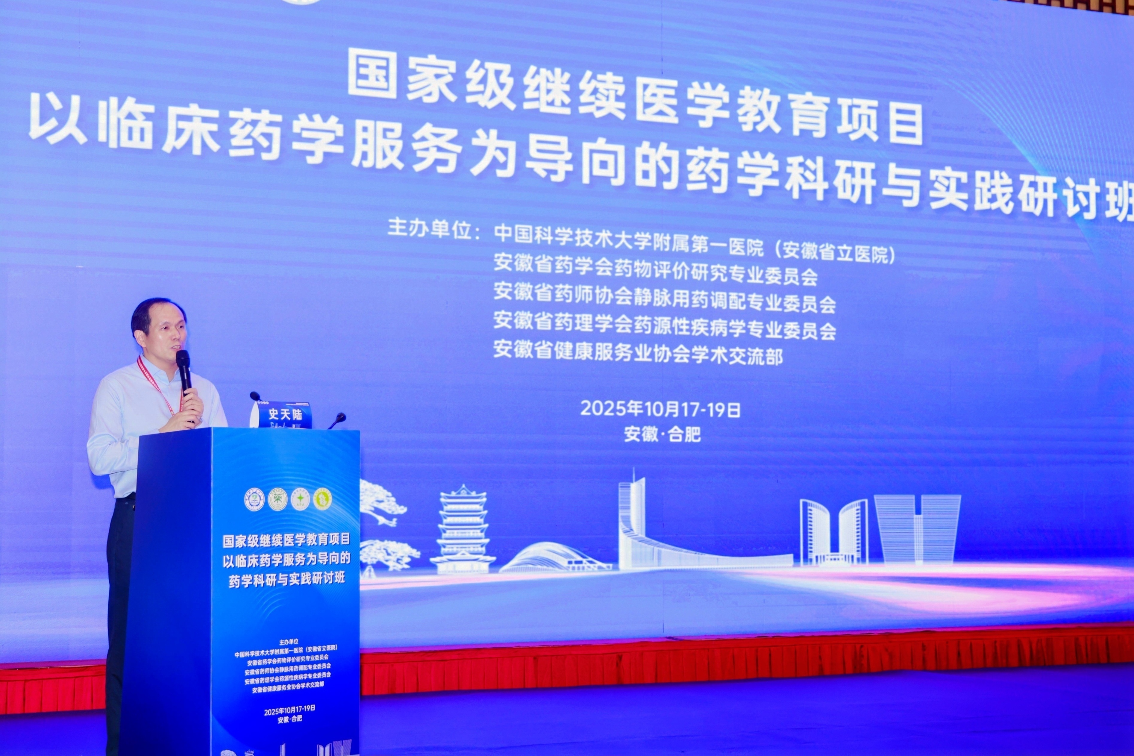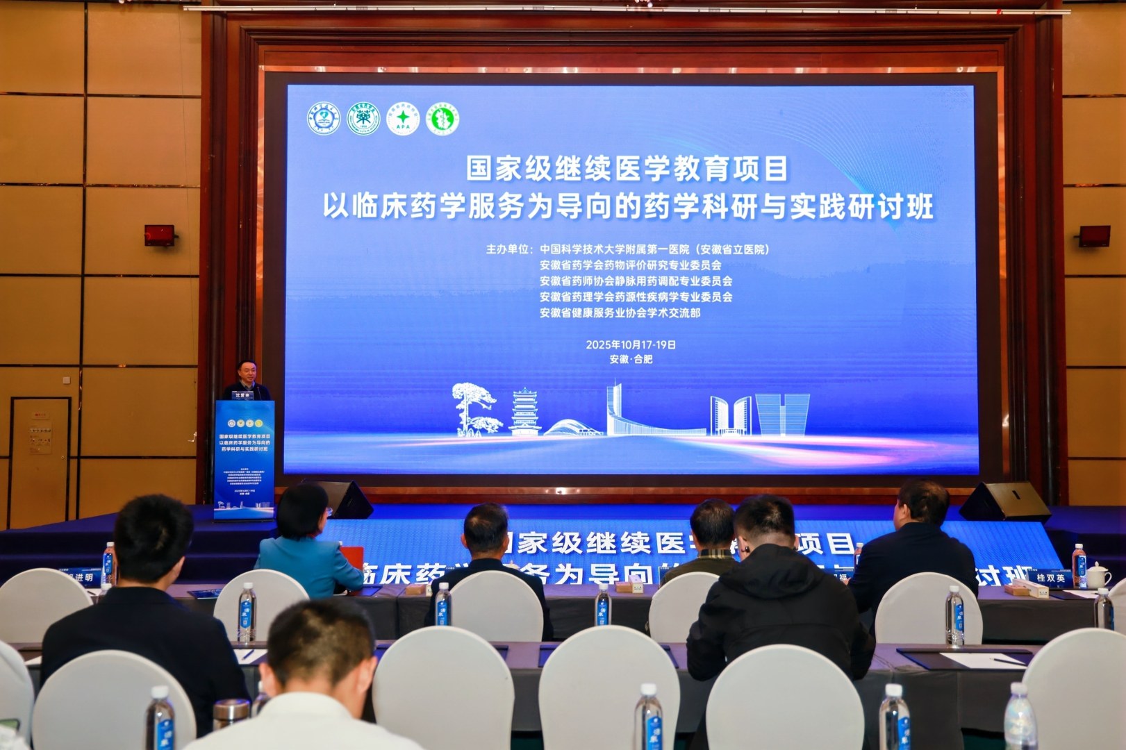 2025年10月17日至19日,由安徽省健康服务业协会学术交流部联合中国科学技术大学附属第一医院(安徽省立医院)等多家专业机构共同主办的国家级继续医学教育项目——“以临床药学服务为导向的药学科研与实践研讨班”在合肥隆重举行。本次研讨班聚焦药学服务转型与科研创新,吸引了来自全国各级医疗机构的300余名药学同仁参与。