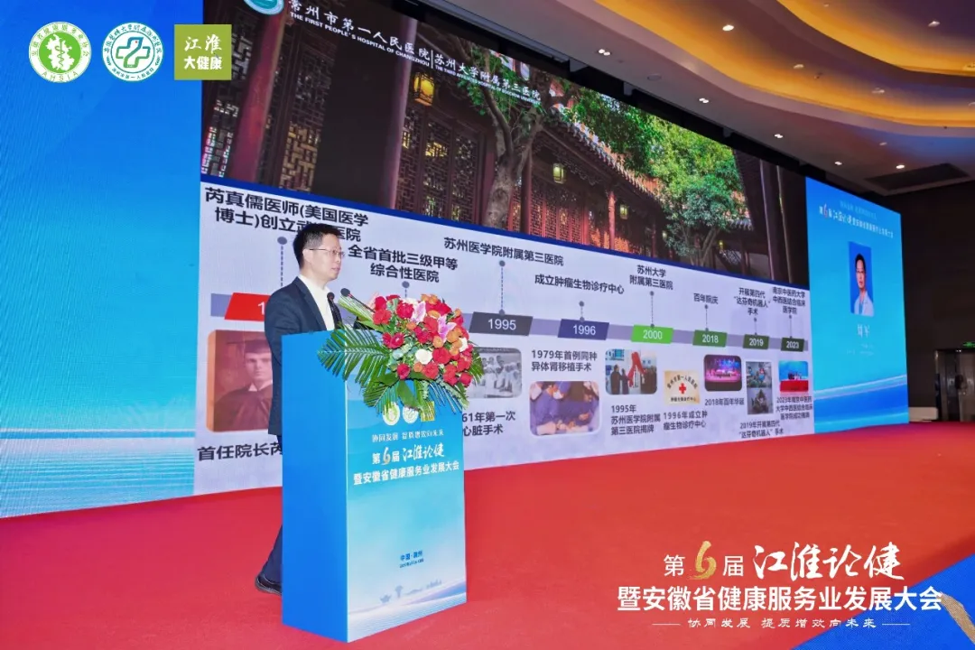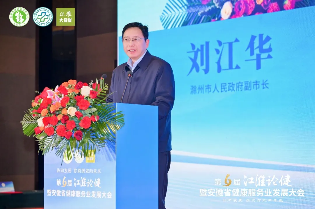 滁州市人民政府副市长刘江华在致辞中欢迎各位领导、专家及嘉宾参会,感谢社会各界对滁州卫生健康事业的支持;介绍滁州经济稳居全省第三、全国百强的发展成就,以及在“三医”协同改革、基层服务提升、卫健信息化建设等方面的亮眼成果,此次大会在滁州举办是难得的交流合作机遇,诚挚邀请与会嘉宾感受滁州魅力,为健康滁州建设建言献策。