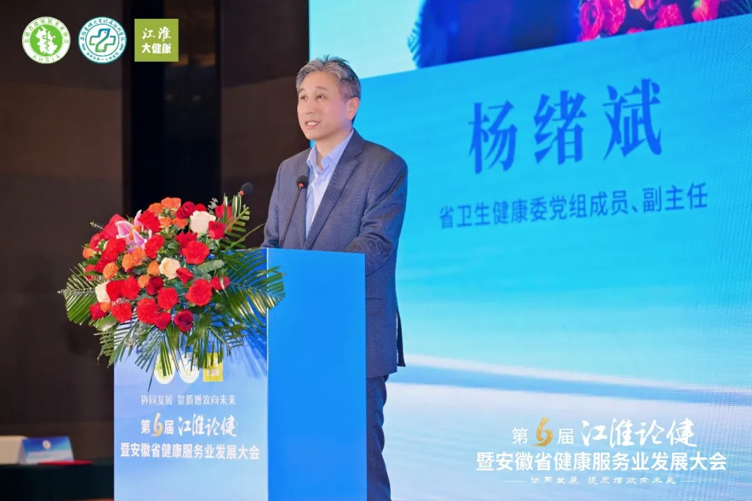 省卫生健康委党组成员、副主任杨绪斌在致辞中代表省卫健委祝贺大会召开并欢迎与会嘉宾,回顾我省以健康安徽建设为统领、健康服务业持续向好的发展成效,肯定协会多年来的桥梁纽带作用;指出本届大会主题契合时代与行业需求,希望各方凝聚共识、破解发展难题;表示省卫健委将持续深化医改、优化政策环境,加大对优质医疗资源下沉、智慧健康技术应用、健康产业创新升级的支持力度。