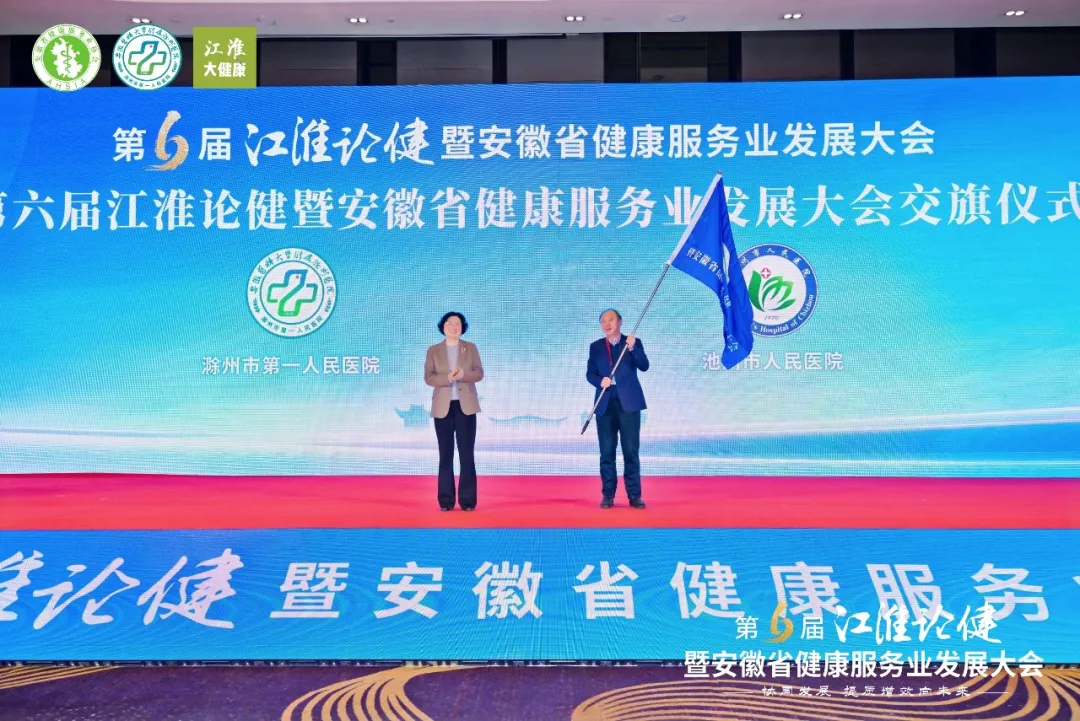 第六届江淮论健交旗仪式顺利完成,池州市人民医院正式接过会旗,成为下一届盛会承办地,标志着“江淮论健”品牌的接力传承。