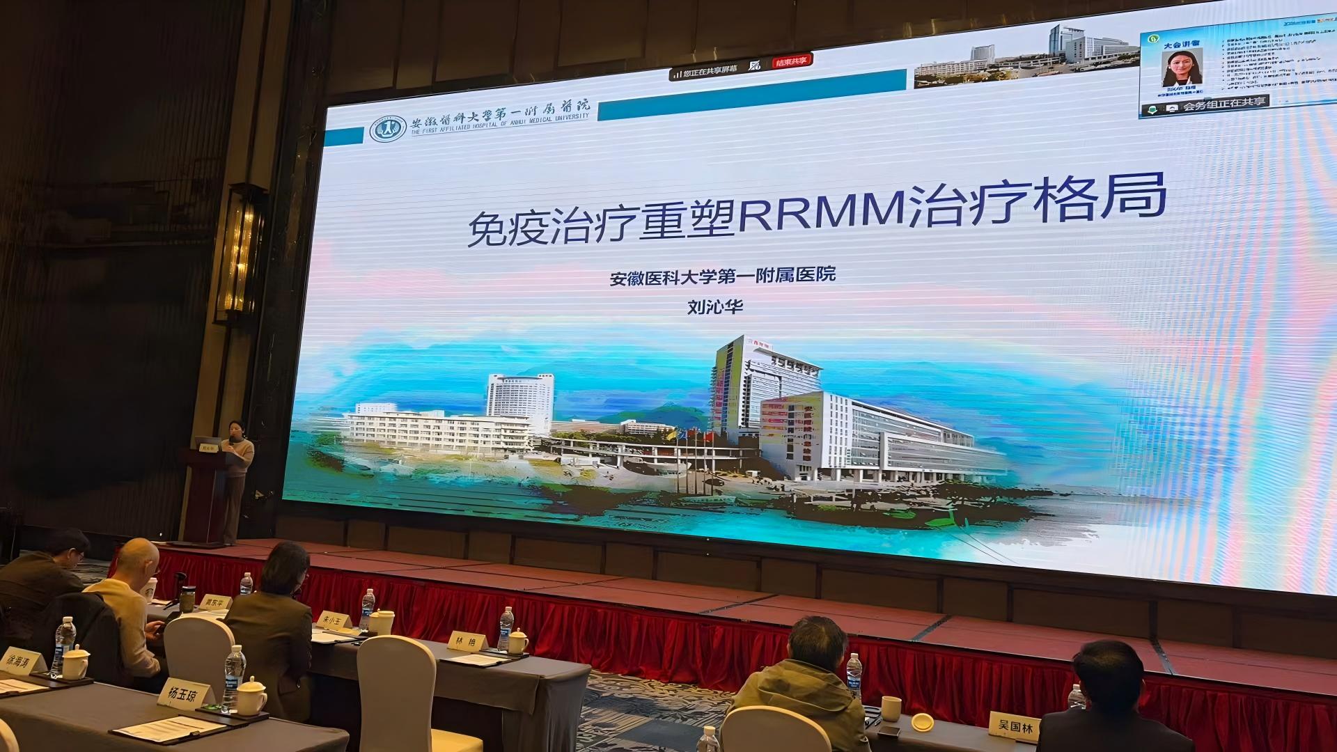 在学术报告环节,安徽医科大学附属第一医院刘沁华教授系统梳理了复发/难治性多发性骨髓瘤(RRMM)的免疫治疗新进展;中国科学技术大学附属第一医院(西区)吴国林教授深入解读了适合移植的新诊断多发性骨髓瘤(TIE NDMM)的治疗策略。此外,常州市第一人民医院林艳教授通过典型病例分享,生动展示了免疫治疗在临床实践中的应用价值。