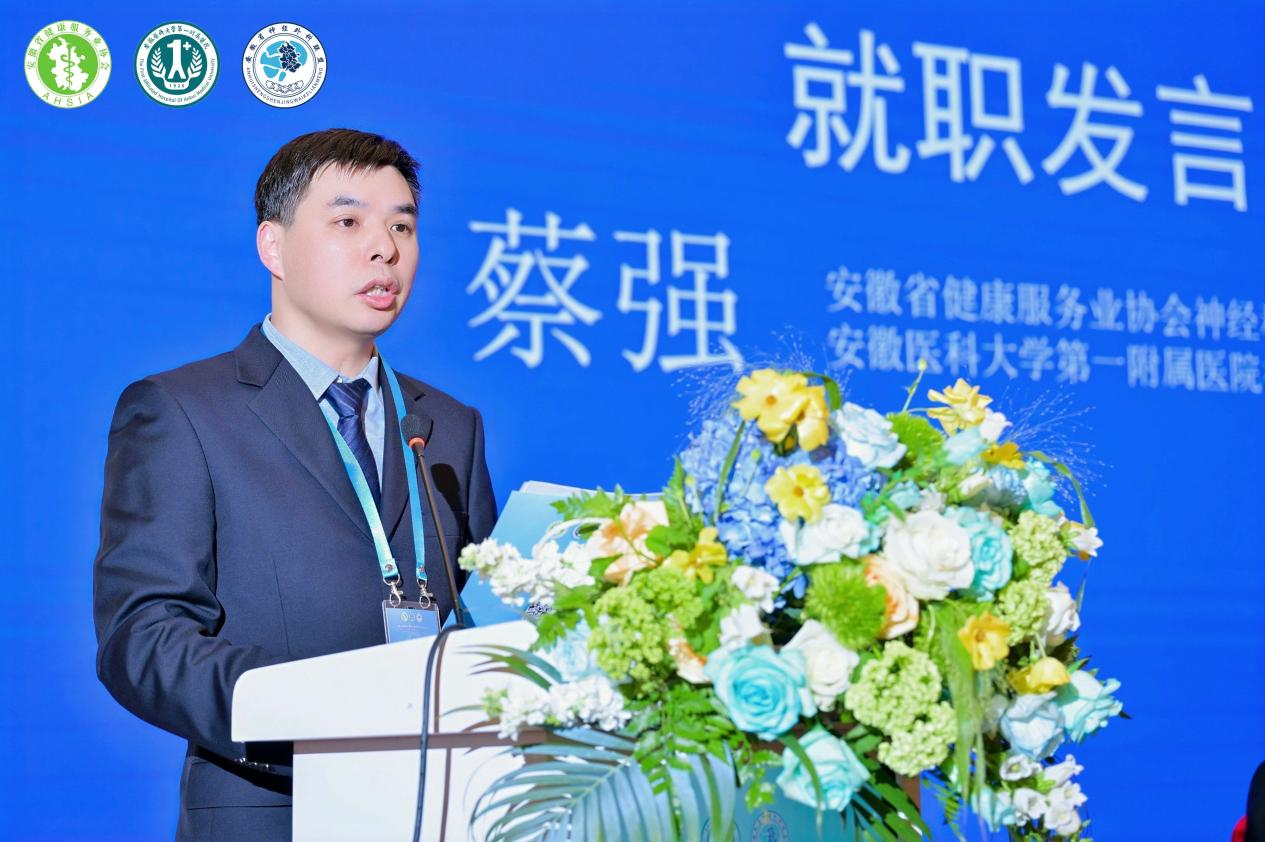 随后,新当选的神经科学分会蔡强主任委员发表就职演讲,他感谢协会领导给予的信任和支持。站在新的起点上,他将与各位同仁一道,以搭建学术高地、促进交流创新为核心,充分发挥桥梁纽带作用,汇聚全省行业力量,推动医教研产深度融合与协同发展;同时坚持服务基层民生,积极开展技术下沉与健康科普,助力健康安徽建设;并不断加强分会自身建设,规范运行管理,以务实担当推动学科高质量发展,切实守护人民群众神经系统健康。